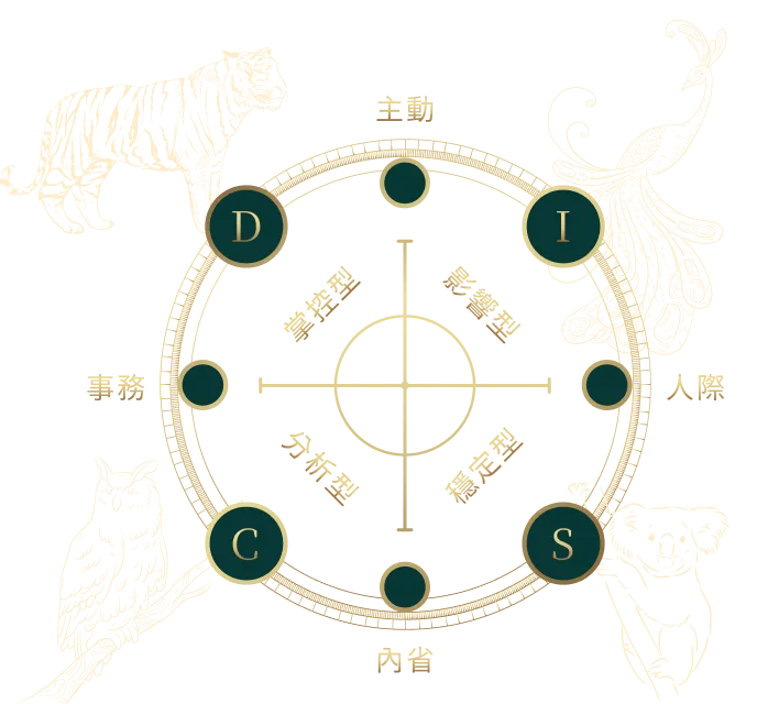 D.I.S.C. 是一種性格測驗,用於評估人們在工作和生活中的行為模式。D.I.S.C. 代表四種性格特徵: